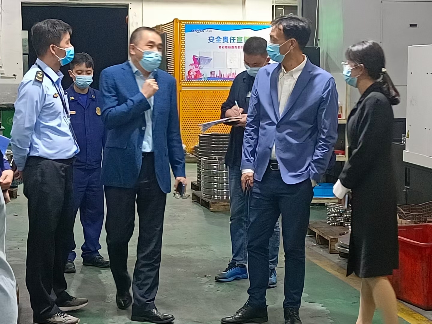 10月12日晚上,温州市湾新区领导前来我公司进行指导生产工作。
