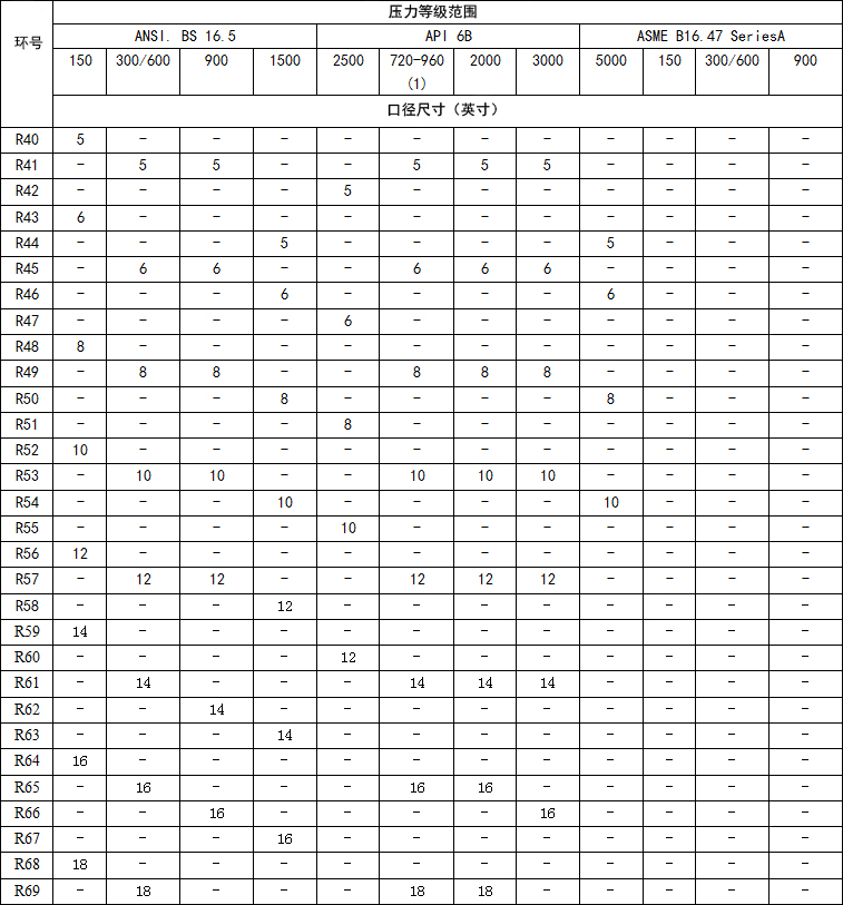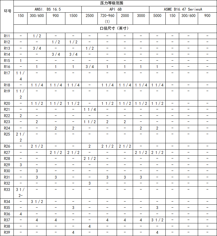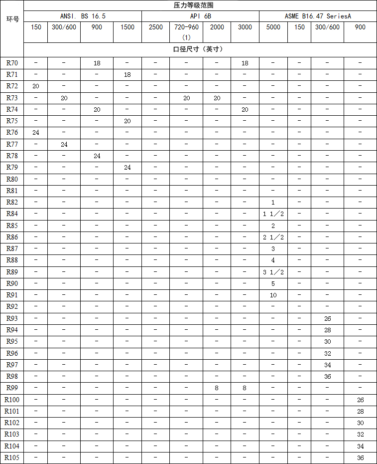 flexftallic风格R环式节点可以制造符合有关标准符合以下法兰代号