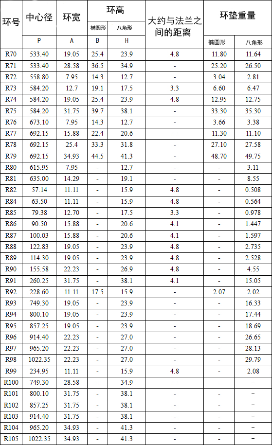 R型垫片的制造符合API 6A、6B和ASME b16.20适合API ASME/ANSI B16.5法兰。在椭圆形和八角形配置,这两种类型是可互换的现代八角型槽法兰。