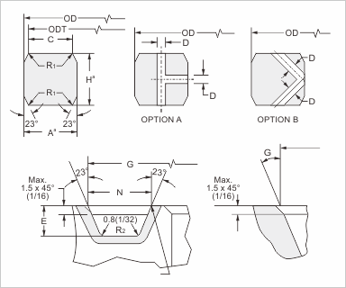 在SBX环截面两压力通道孔防止压力锁时,连接是由水下。提供钻井压力通道孔两种选择。一个加宽容0,2 mm(0008)宽度和高度是允许的,只要在任何环的宽度或高度变化不超过0.1毫米(0004)沿整个圆周。